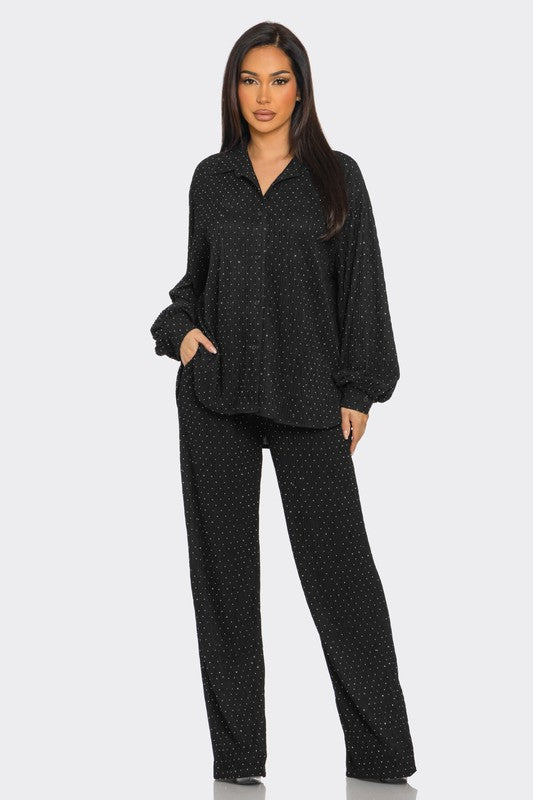 Luxe Linen Lounge Set — made from a premium linen-blend fabric with stretch for maximum comfort and movement. This tall-girl-friendly two-piece features a relaxed button-down top and wide-leg pants that drape beautifully for a polished, elevated look. Perfect for brunch, travel days, or a chic casual moment. Available in Pink, Green, and Black.
